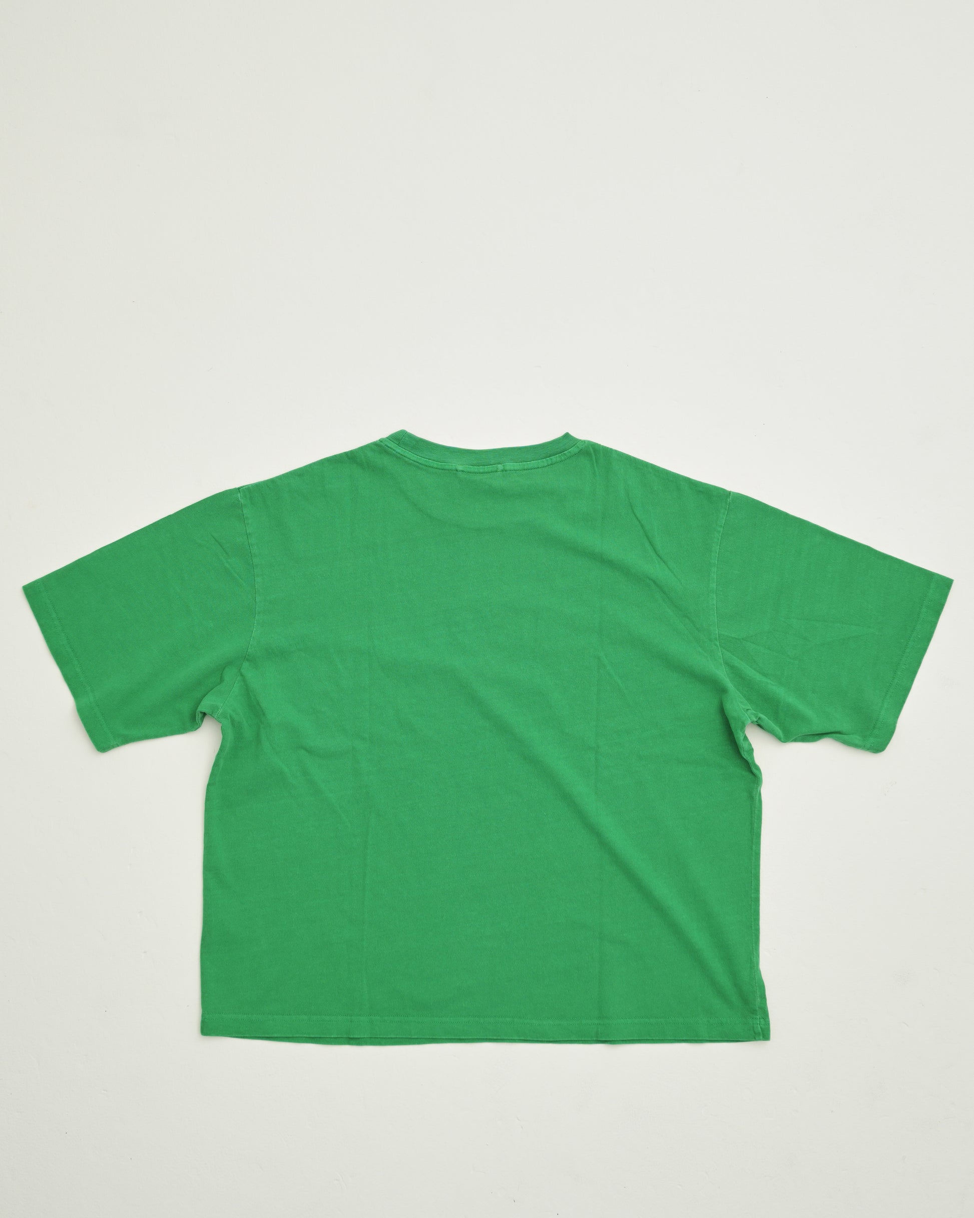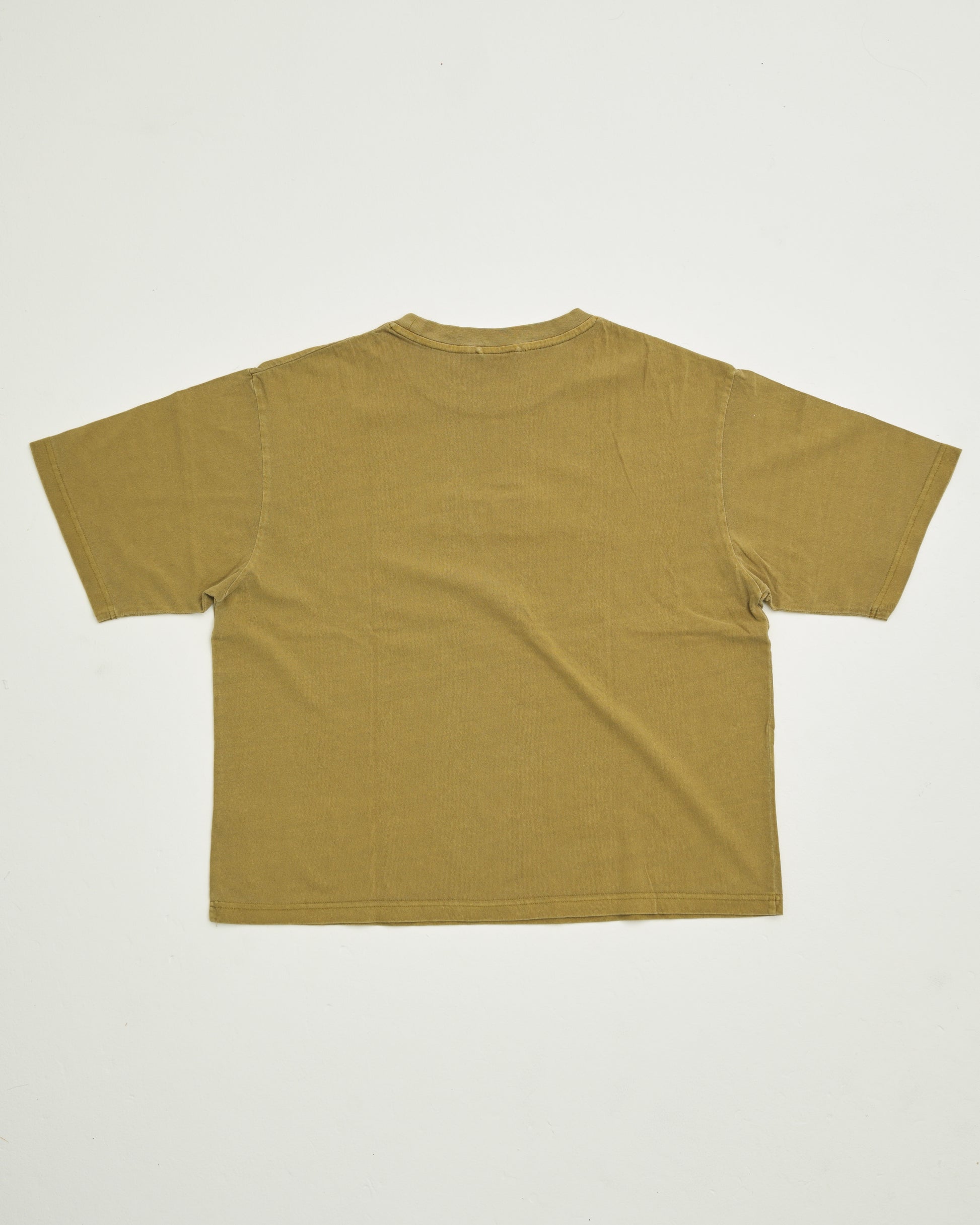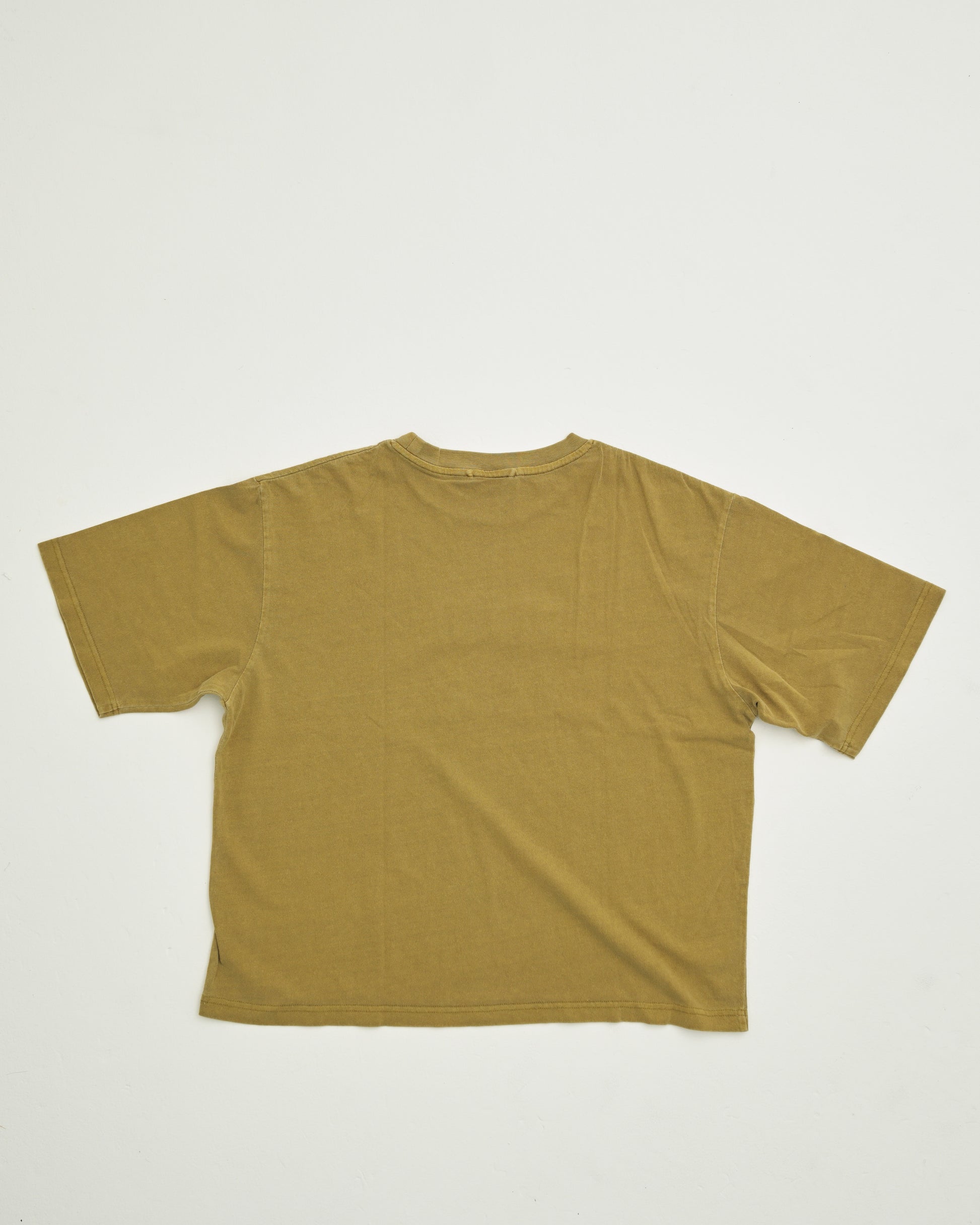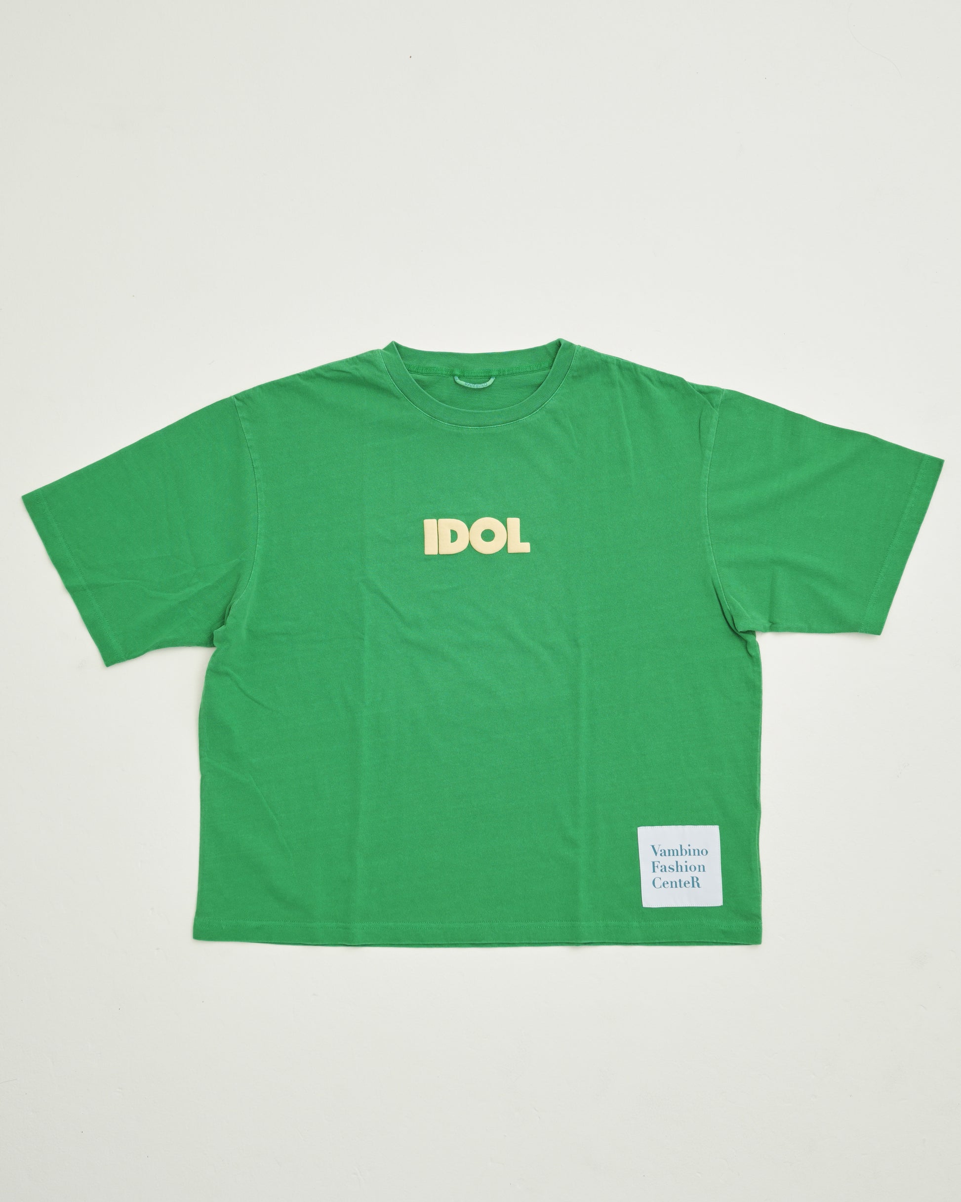 ピグメントダイ(製品染め加工)を施した雰囲気の出たカラーリングに厚盛りの発泡プリントでIDOLと入ったリラックスフィットシルエットのTシャツ。COTTON100% ※モデル170cm S着用 ※こちらの商品は製品染めの商品のため、洗濯するも他の衣類に色移りする可能性がございますので、お洗濯の際は単体で洗濯機に入れてください。